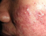 治疗前:郭女士,35岁,江苏人。发病初期,脸部泛发红丘疹,瘙痒难耐。在江苏当地医院就诊,涂擦药膏后致使病情加重,对当地医院失去信心。